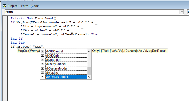 A IDE do VB6 mostra automático, conforme o que puder ser usado.