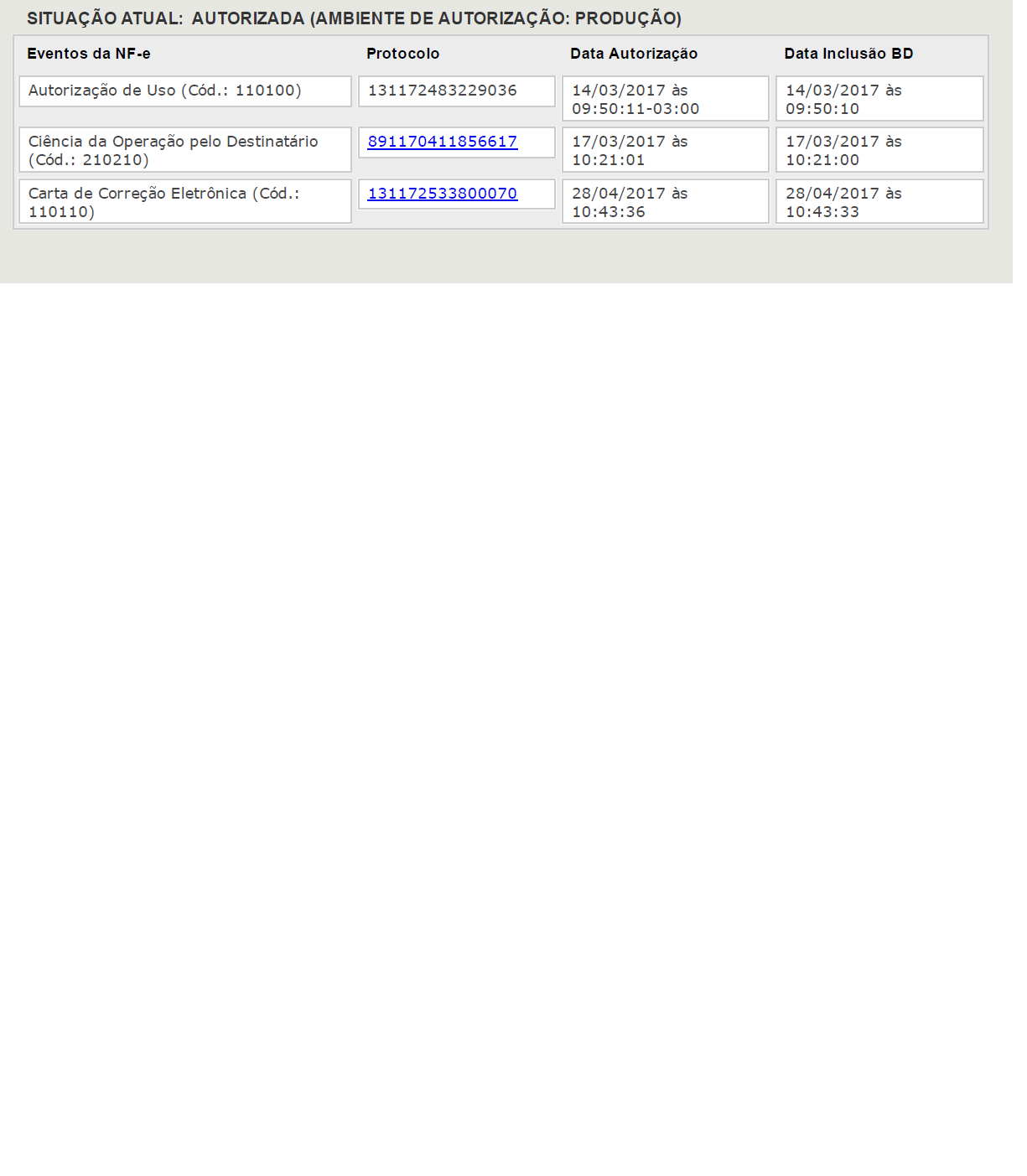 Conforme podem ver em anexo, na imagem retirada do site da fazenda, esta NF-e já possui um evento cadastrado, feito certinho no meu sistema.