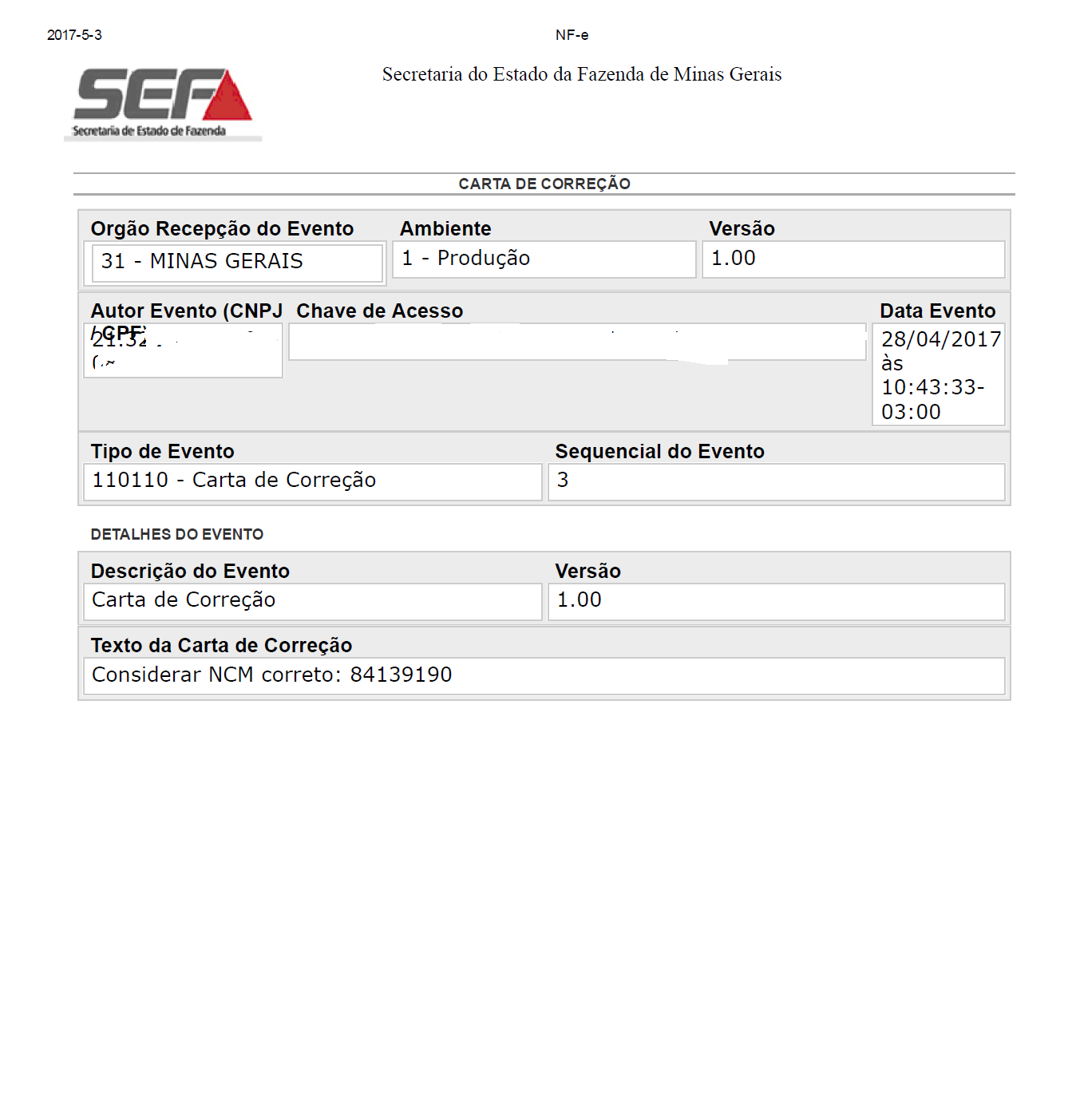 Vamos aos novos fatos. Após todas as mudanças, eu imaginei que tudo estaria resolvido, e o cliente até conseguiu registrar mais uma carta de correção com a sequência nSeqEvento=3, registrado corretamente conforme pode-se ler na imagem que irei anexar.