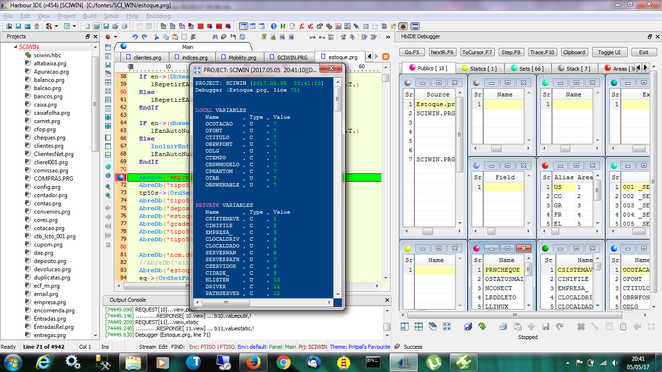 Continuo com a opinião que essa é a melhor IDE para quem usa o Harbour. Vários recursos bons e não está estagnada no tempo. Desenvolvida por um programador que usa o Harbour, usando QT e seu código está a disposição para quem sabe e quer ajudar. O Debug dela, é uma das principais ferramentas, para que tem o hábito de usar. O HbDBU permiti abrir o DBF e junto com intellisense mostrar os nomes dos campos do DBF no editor.