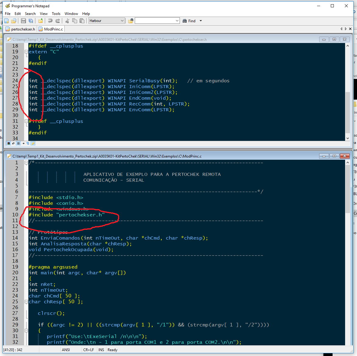 Esta rotina em C é um exemplo de uso das funções de pertoChekser.DLL