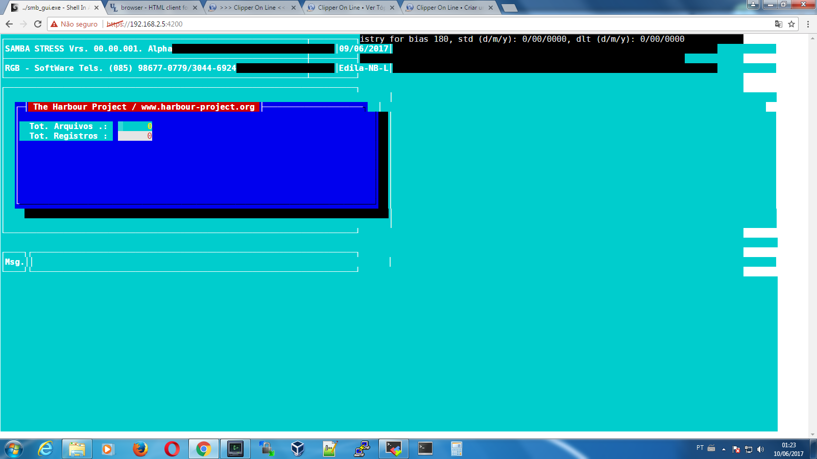 Vou tentar enviar um Print da tela, uma app Win/Console rodando no Linux via Browser