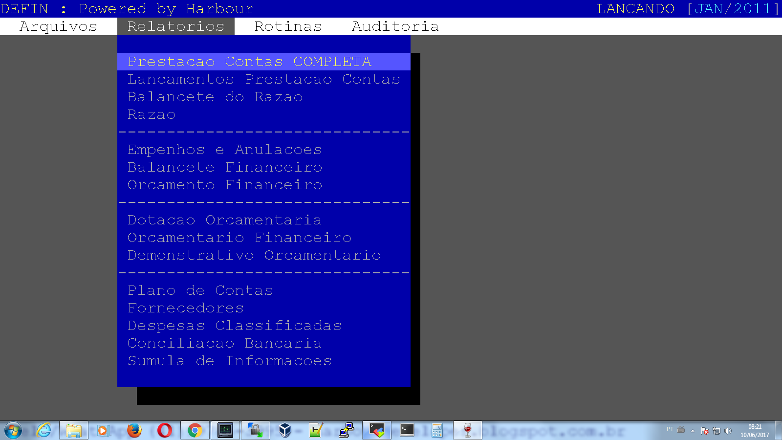 Até 2017    Desktop Console [ Legado ] Harbour | MinGW | DBF | CDX | FastReport | MySQL