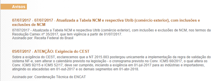 13/07/2017 - Republicada na aba "Documentos", Opção "Diversos" a Tabela de NCM e respectiva Utrib