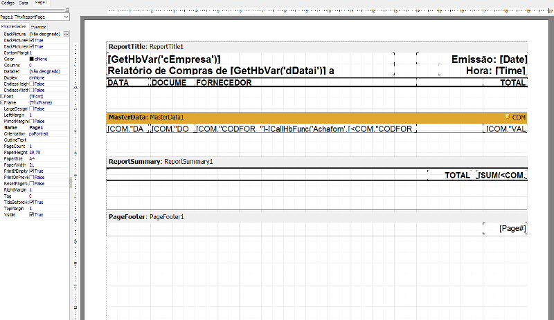 e a instrução [CallHbFunc('Achaforn',[<COM."CODFOR_">])] executa a função Achaforn enviando o parametro código do fornecedor (COM."CODFOR_")
