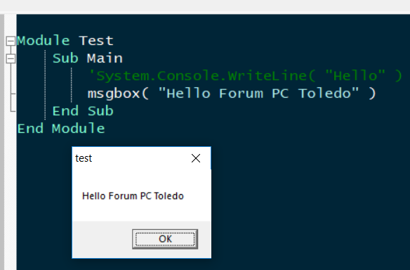 Aí criei um fonte test.vb: