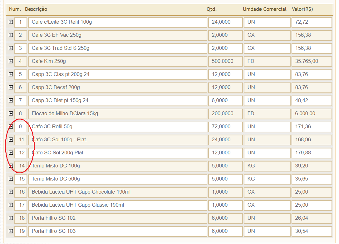 Baixando pela solução deste tópico ele tenta consertar essa quebra de sequencia rsrsrs, mas se atrapalhou não pegando os produtos corretamente. Os itens faltantes (10 e 13) ele repete pelo PRIMEIRO produto. O produto <cProd>000000000012036006</cProd> há 3x no xml.