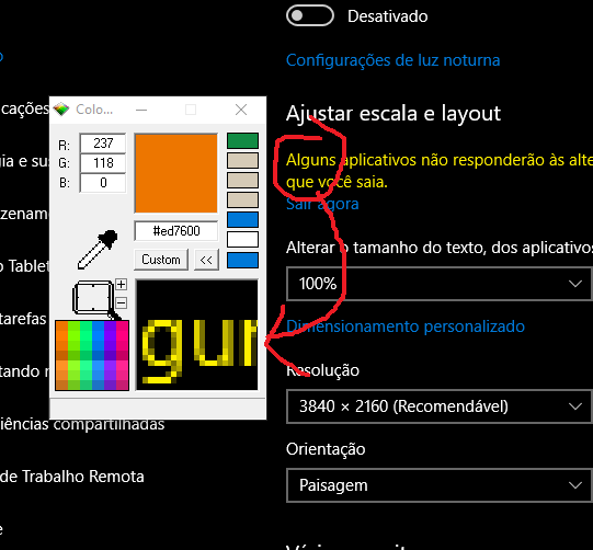 No Windows 10 precisa desativar a ampliação, senão pega a cor errada.