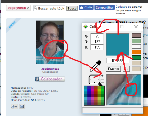 Na imagem faltou selecionar o ponto da imagem ampliada, pra mostrar a cor selecionada.