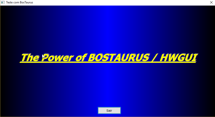 BT_DrawText (hDC, Height/2, Width/2, "The Power of BOSTAURUS / HWGUI", "Tahoma", 30, YELLOW, BLACK, nTypeText, nAlignText )