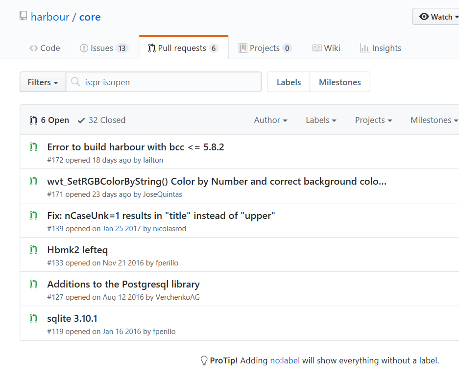 Pessoalmente, eu começaria por correção de bugs. Se o Viktor corrigiu bugs na versão 3.4, mas eles não foram corrigidos na versão 3.2, então seria algo para se levar para a lista de desenvolvedores do Harbour. Naturalmente, dando preferência para bugs no core.
