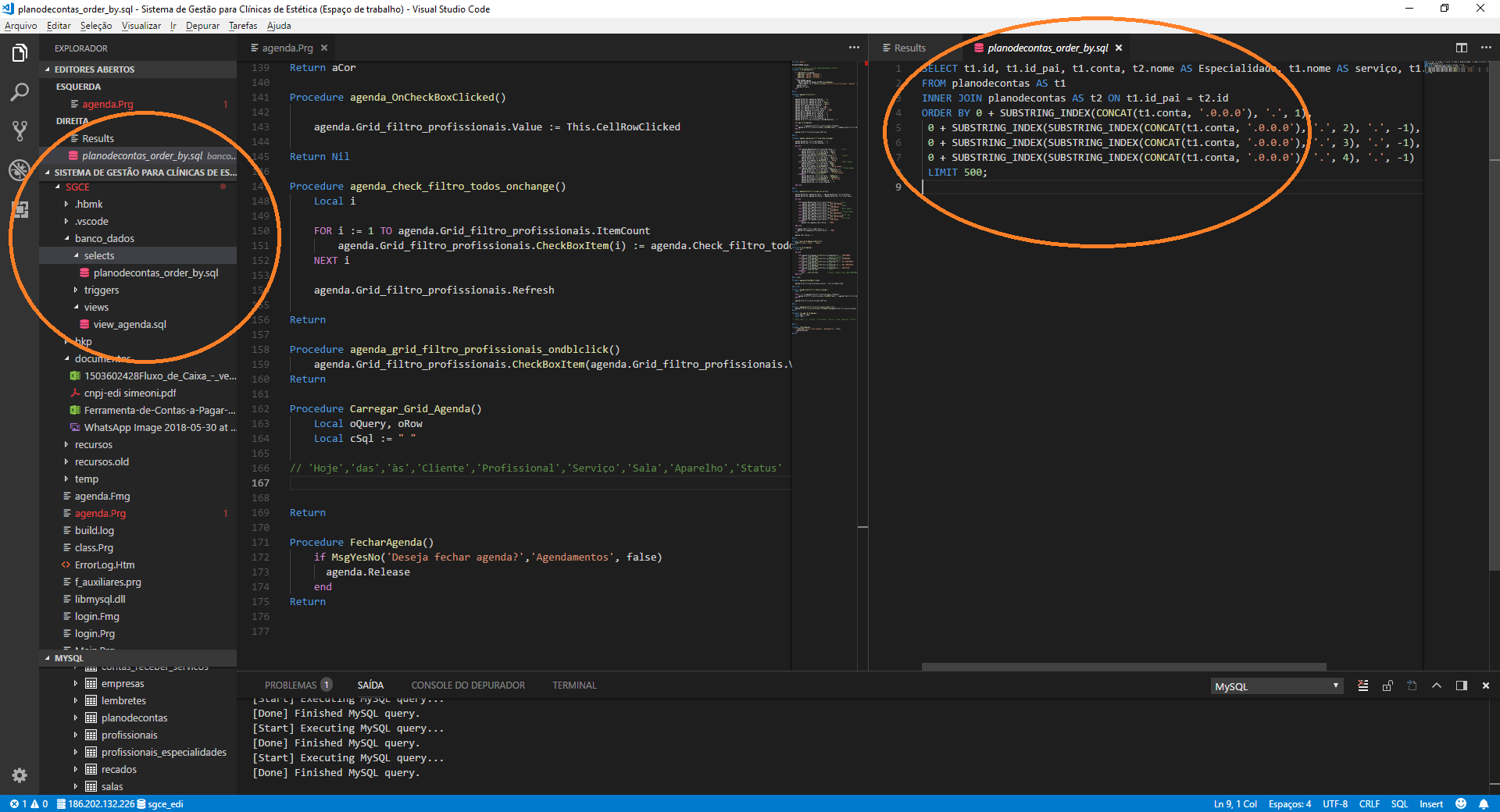 Não percam tempo, mude já para o VCS, é muito da hora, cada dia estou gostando mais... agora aprendi a conectar minha base de dados MySQL ao editor, é uma mão na roda para agilizar o projeto, olhem as imagens...