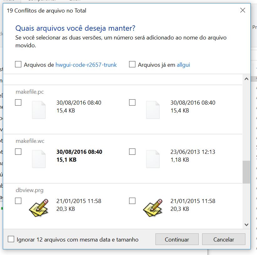 Na hora de descompactar..... muitos arquivos repetidos, inclusive de tamanho diferente.
