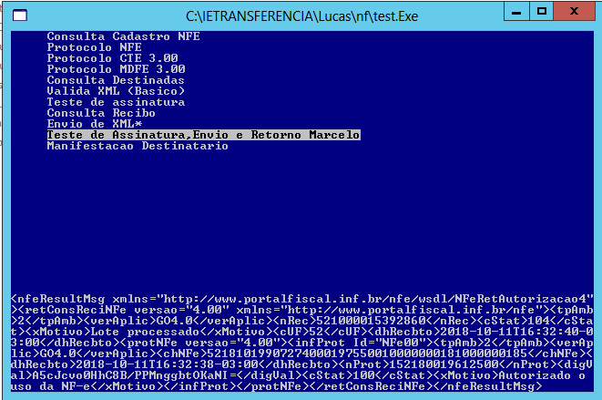 cReciboAutorizado := "Ambiente: " +XmlNode( XmlNode( oSefaz:cXmlRetorno, "infProt" ), "tpAmb" ) + HB_EOL()