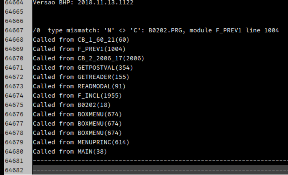 /0  type mismatch: 'D' <> 'C': B0500.PRG, module F_FATURA line 1430