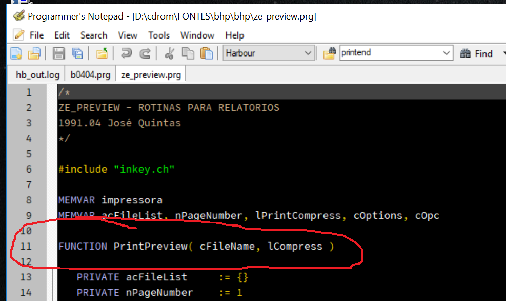 Ok, na chamada de printend() desse módulo... mas tem duas, qual delas deu erro?