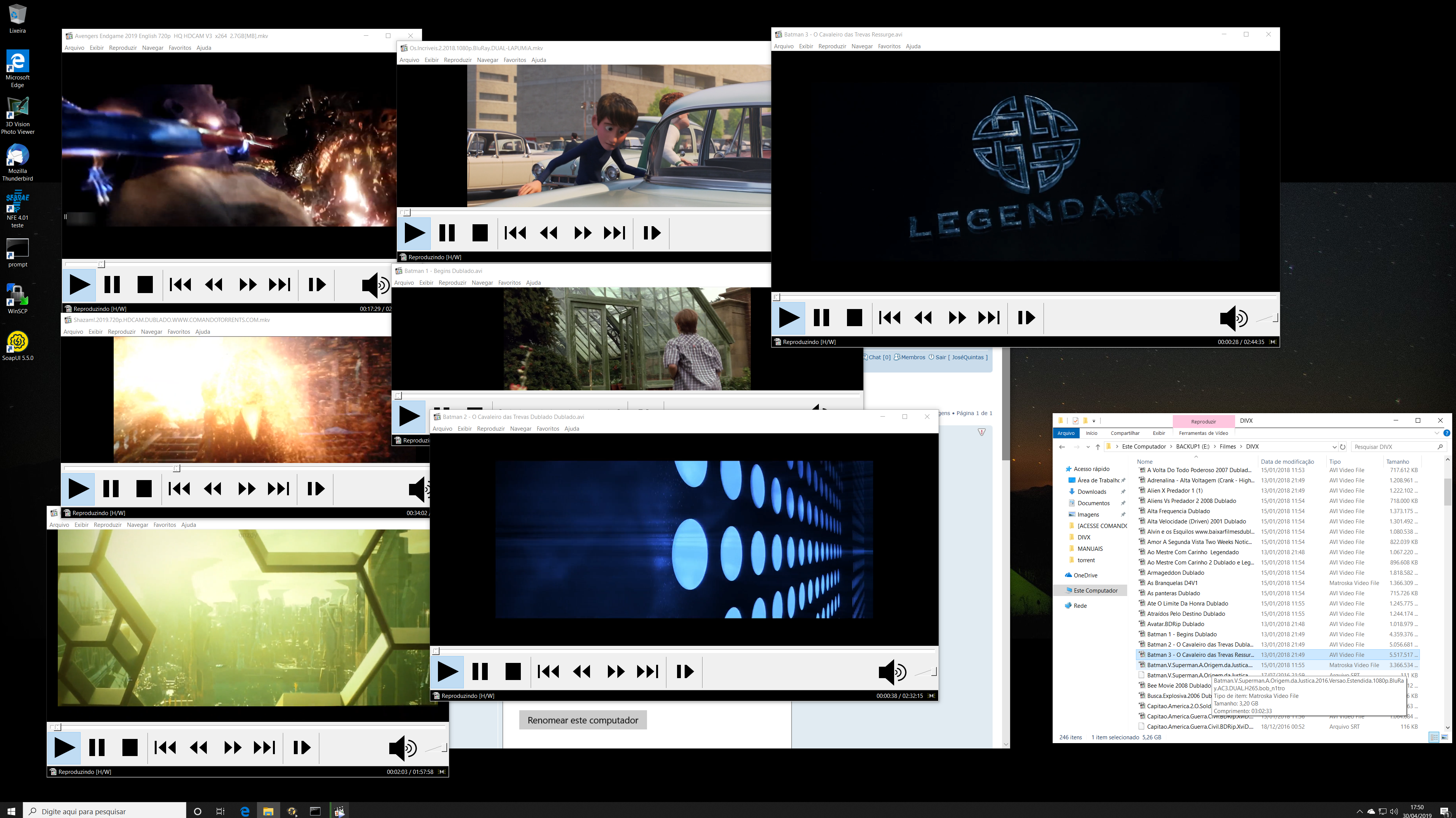 Por falar nisso.... nem sei o que acontece com os filmes ao usar ampliação.... se isso se aplica a eles, talvez deixando 100% consiga executar os 7 filmes ao mesmo tempo, pelo Windows não precisar fazer os cálculos de ampliação.