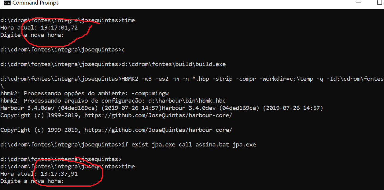 Como deu pra ver, está demorando 21 segundos com MINGW para o aplicativo que mais compilo, incluindo compactação e assinatura.