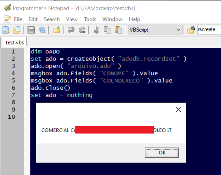 Neste caso é ADO puro, sem qualquer banco de dados.