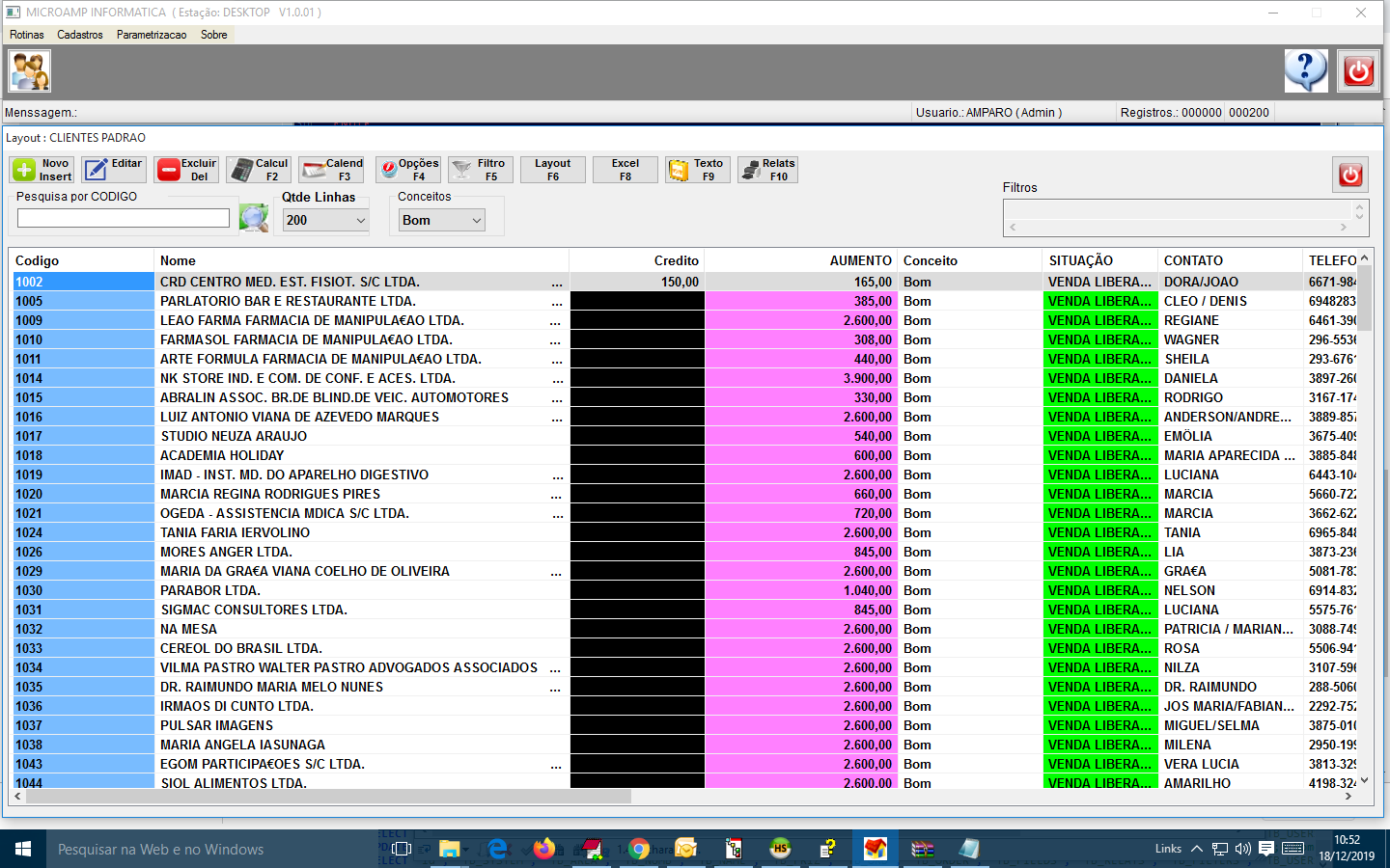 A:CALCULADA;F:IF(CONCEITO="BOM","VENDA LIBERADA", IF(CONCEITO="NOVO","VERIFICAR","NEGADO"));H:SITUAÇÃO;L:12;M:SITUACAO;C:COR_GRID_VERDE;B:;P:;T:C;