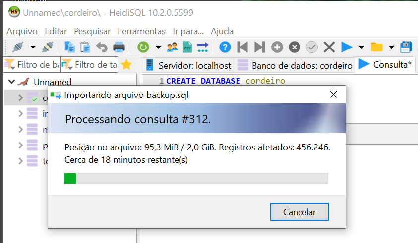 Como é o primeiro uso do dia, tá fazendo backup do MariaDB, apesar de mostrar MySQL.