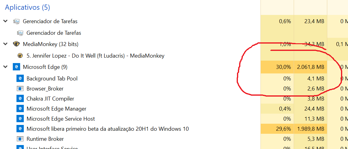 Esse uso de 2.5GB pelo Edge numa máquina com 4GB ou menos.... acabou-se a máquina !!!!