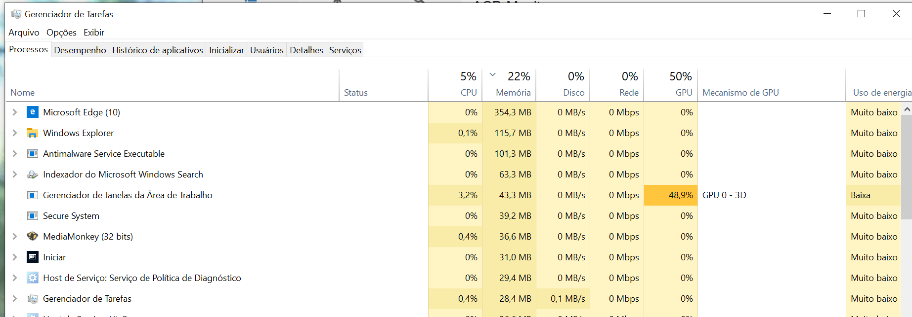 Porque o gerenciador de tarefas usa tanto tempo de GPU?