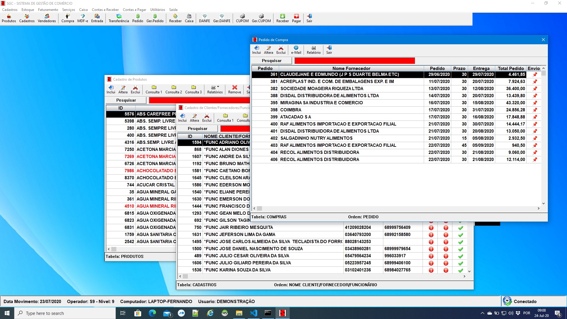 HARBOUR 3.2, HWGUI 2.23 B7, SEFAZCLASS, PDFClass, ADO + MariaDB/MySQL, RMChart, Python + FASTAPI , Android Kotlin