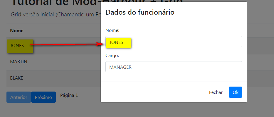 Eu fiz uma pequena modificação. Deixei de exibir a chave primária e coloquei o campo "job" no lugar. Só deixei de exibir a chave, mas ela continua armazenada na tag ___pk de cada linha do grid. Senão eu não vou conseguir carregar o form de alteração, que será a próxima postagem.