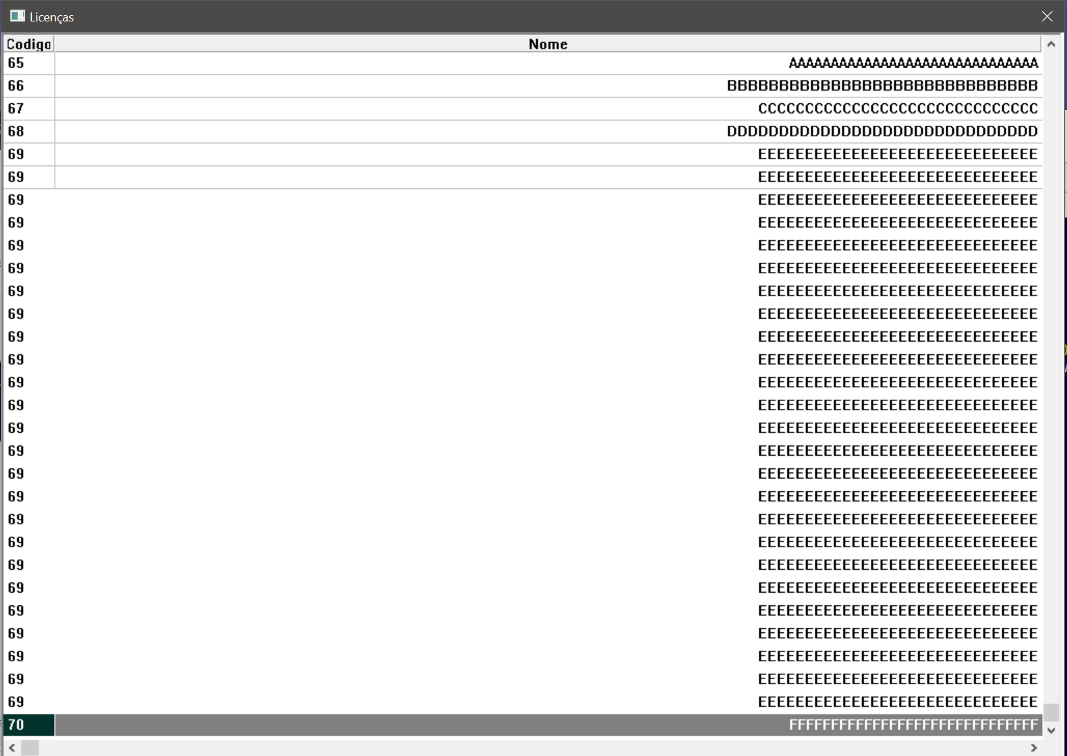 :Fields( "NOME" ):Value := Replicate( cLetra, 30 )