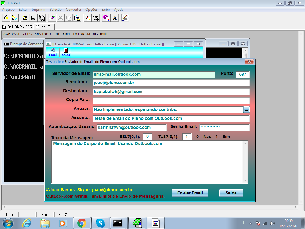 ACBRMAIL.PRG Enviador de Emails(OutLook.com) -> Todos os componentes anexos e gratuíto no download:
