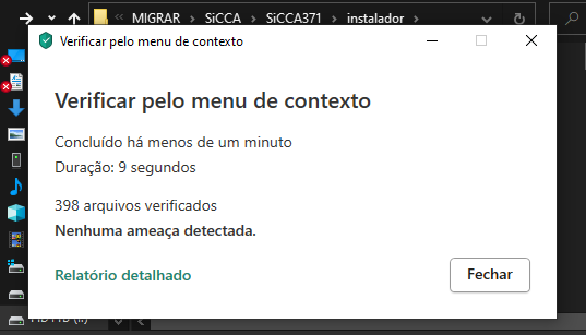 - dentro do .EXE do executável (antes de criar o instalador) também não tem vírus;