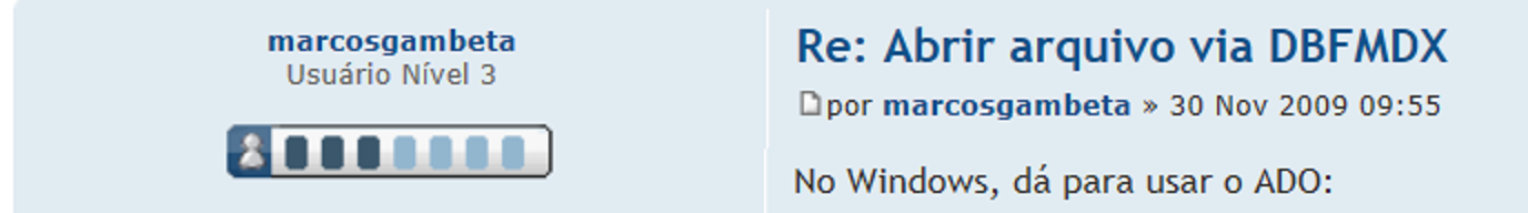 Nem Harbour e nem xHarbour trabalham com este tipo de índice. A biblioteca mdx que tem no xHarbour é a biblioteca cdx com o nome trocado, de forma que vai tentar processar os índices mdx como se fossem cdx. Não vai funcionar.Mário Isa escreveu:E procurei a biblioteca DBFMDX.LIB no xharbour e não achei. Tem jeito de abrir no xharbour ?Mário