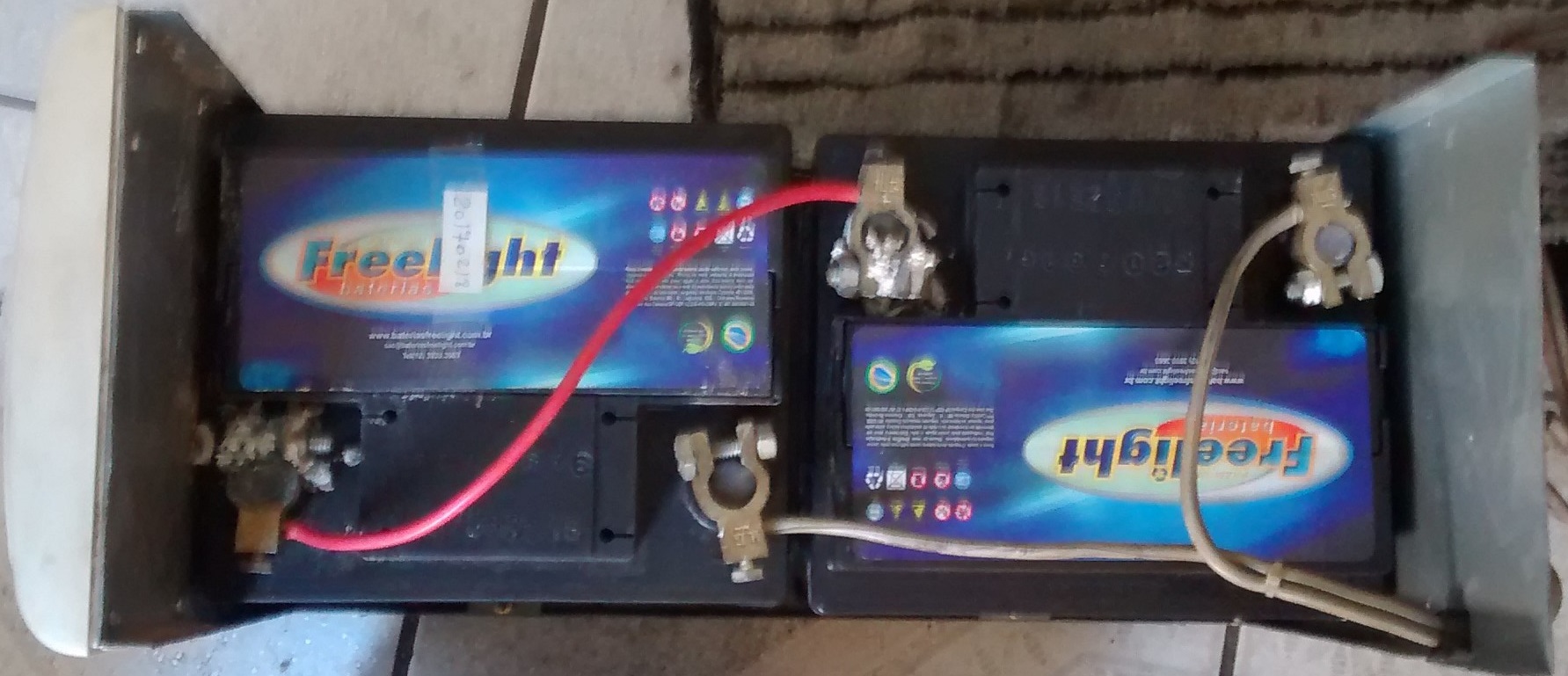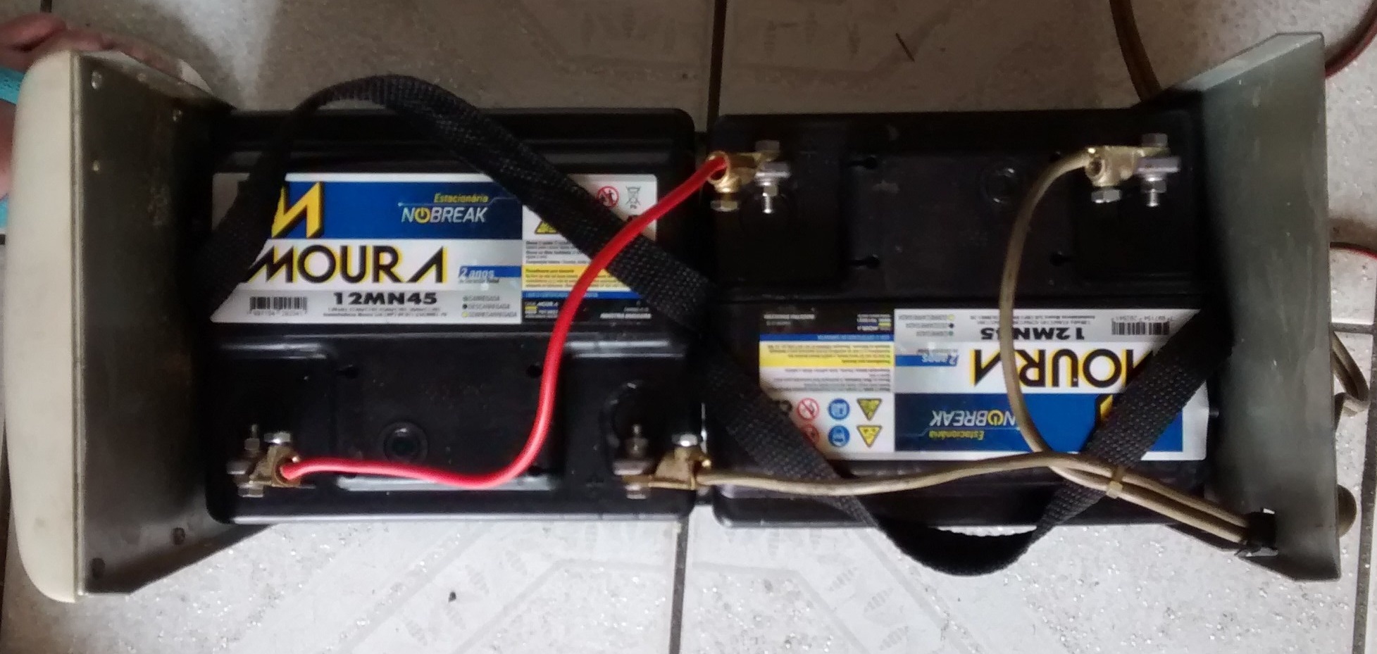 Sempre usei baterias automotivas Moura, são 2 baterias de 40A.