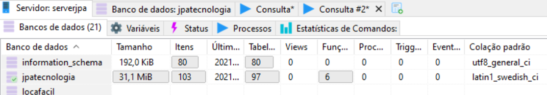 Um no meu servidor Windows MariaDB, outro no provedor de internet em Linux MySQL