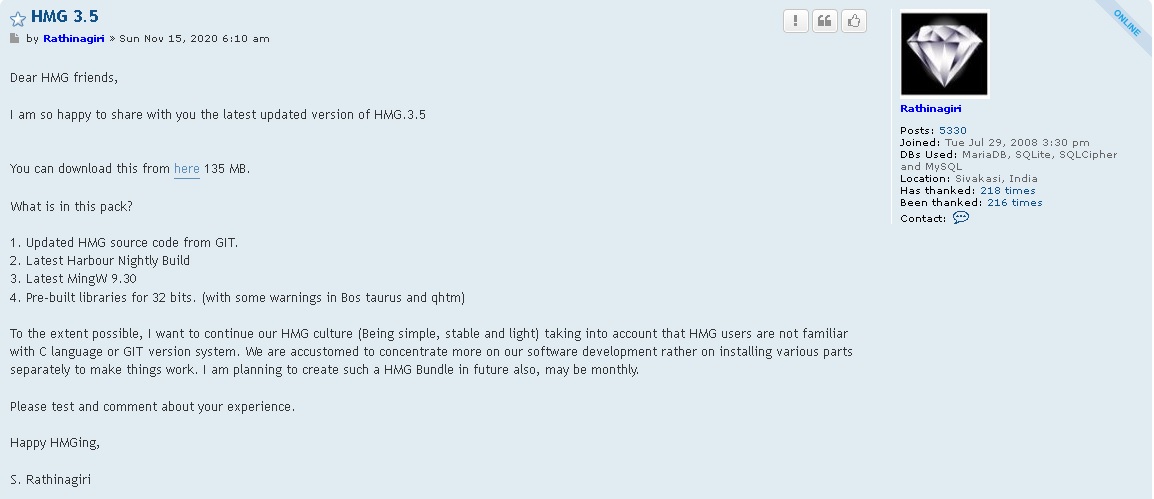 como disse noutro tópico, eu estou compilando meus programas com a HMG 3.5 de dentro da IDE... sem .BAT.JoséQuintas escreveu:Com mingw posix parece que ela é obrigatória, acaba exigindo a dll, e por isso o erro.