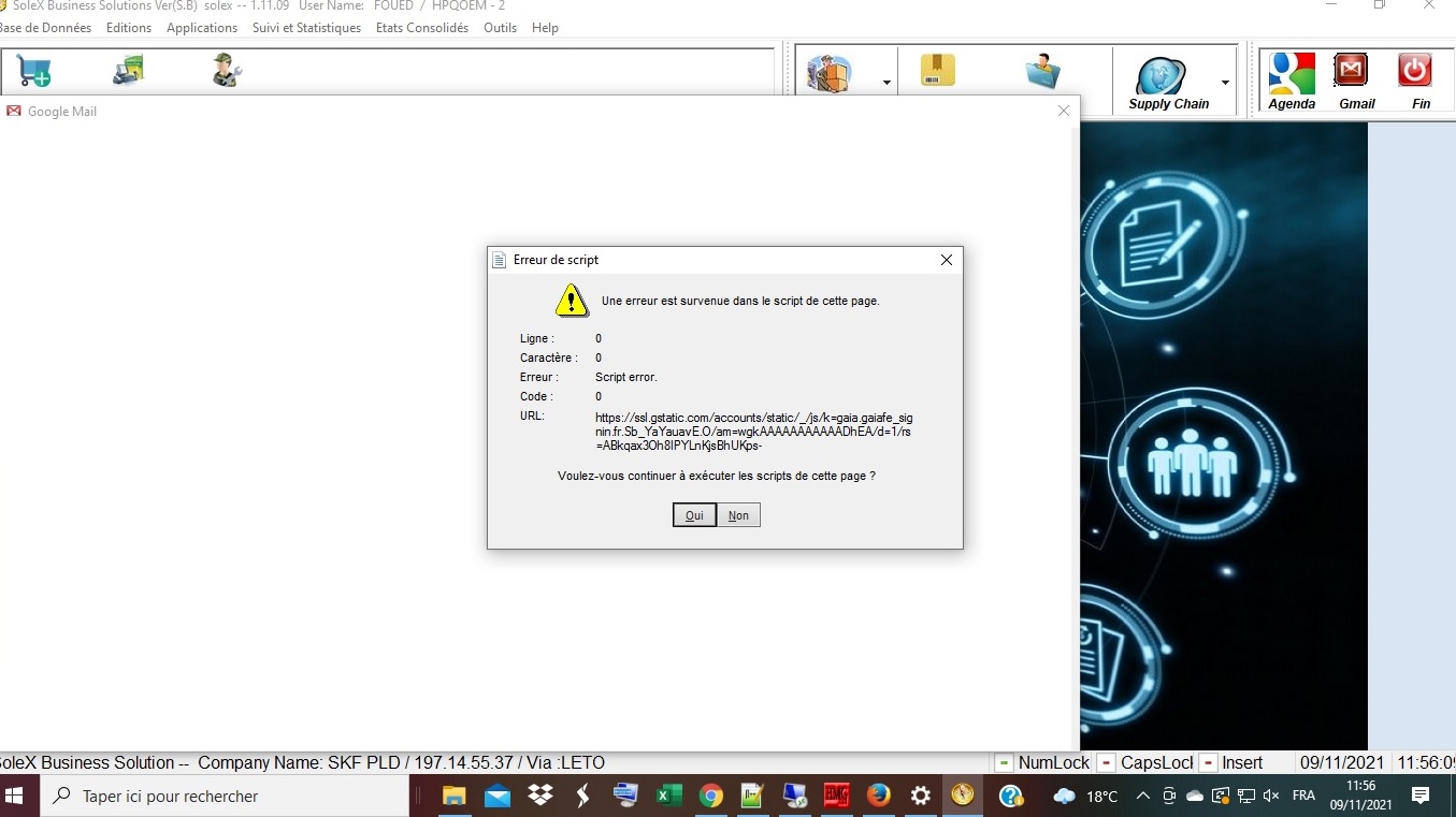 There are an error in the script, so, what happens if you click on "Oui"? And, what happens if you try open another address?