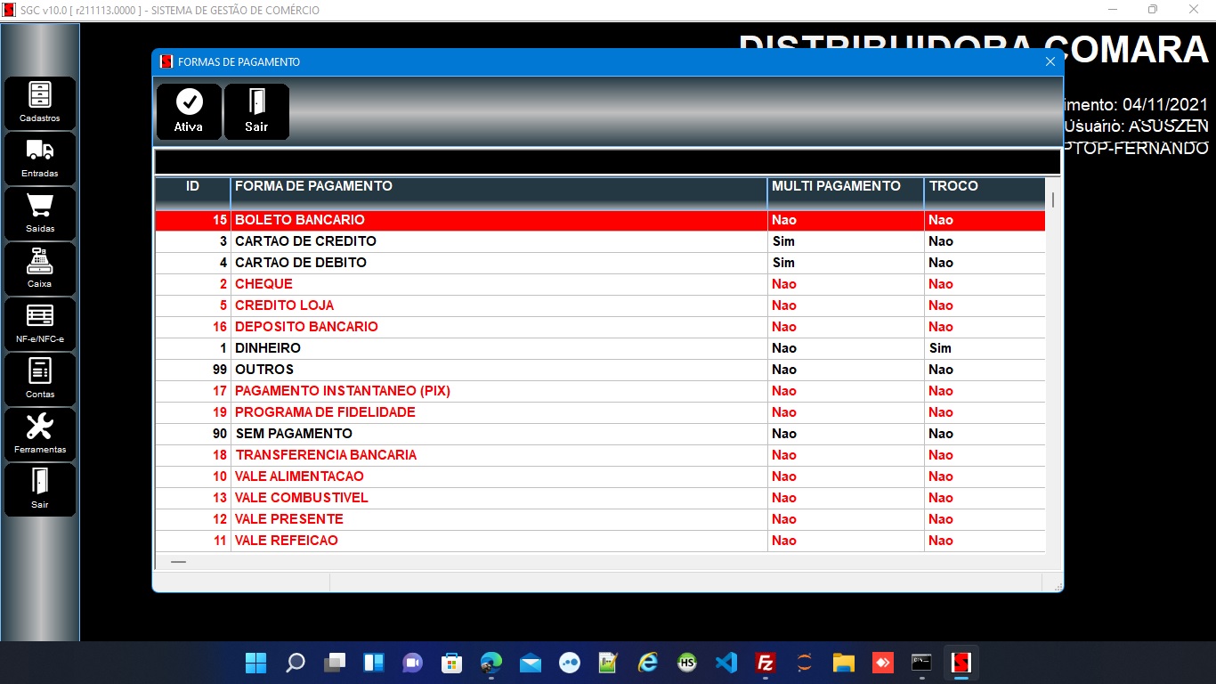HARBOUR 3.2, HWGUI 2.23 B7, SEFAZCLASS, PDFClass, ADO + MariaDB/MySQL, RMChart, Python + FASTAPI , Android Kotlin