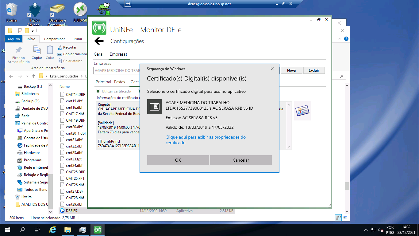 estamos com senha de administrador, está instalado mas no test.exe não aparece ele. Com o uninfe consegue encontrar, por isso que tem algo na escolha do certificado na classe que não detecta no windows server.