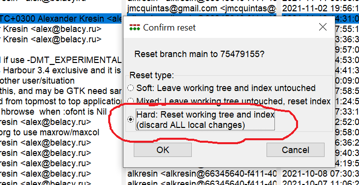 e escolher reset pesado, vai deixar a pasta de trabalho exatamente igual ao source-forge.
