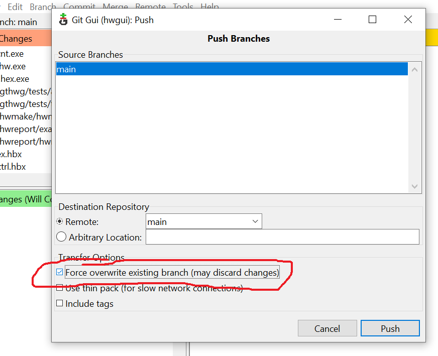 Marcando isso, no github vai ficar exatamente igual ao que está local, que é igual no sourceforge, "jogando fora" qualquer diferença.