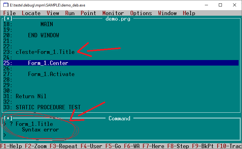 Tentei pelo VSCode, pelo MPM pelo Nativo (compilando em modo MIX) e pelo HWGDebug.... Consigo Debugar em todos mas em nenhum deles consigo fazer com que mostre o valor da propriedade... acho que a sintaxe pode estar errada...