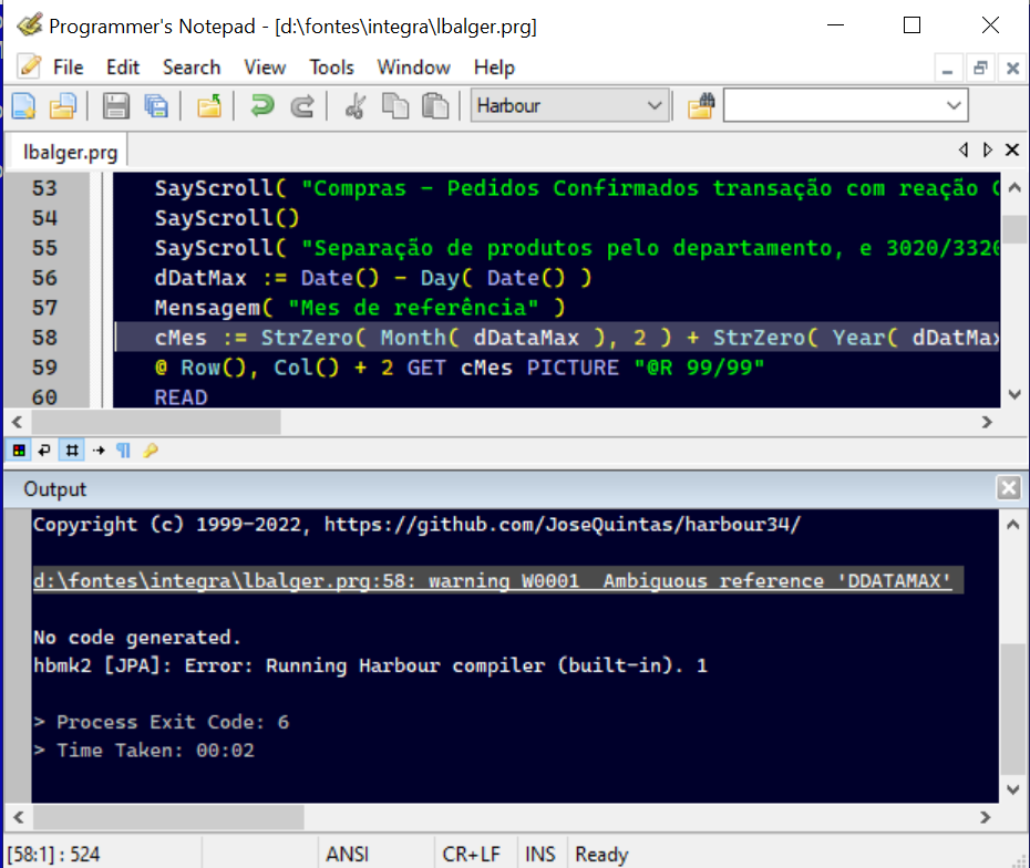 Então.... errei o nome da variável na hora de digitar o fonte.d:\fontes\integra>HBMK2 -w3 -es2 -m -n *.hbp -strip -compr -workdir=c:\temp -q -ID:\fontes\build\