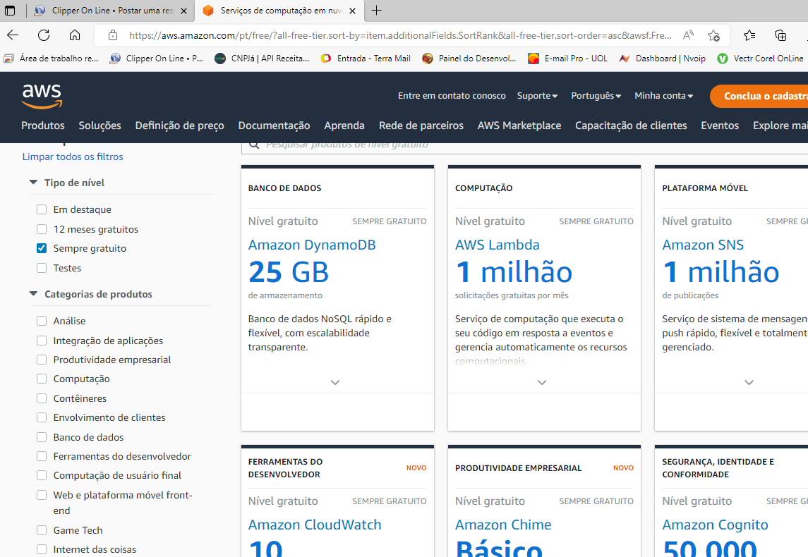 contei 36 produtos do nível"SEMPRE Gratuíto"