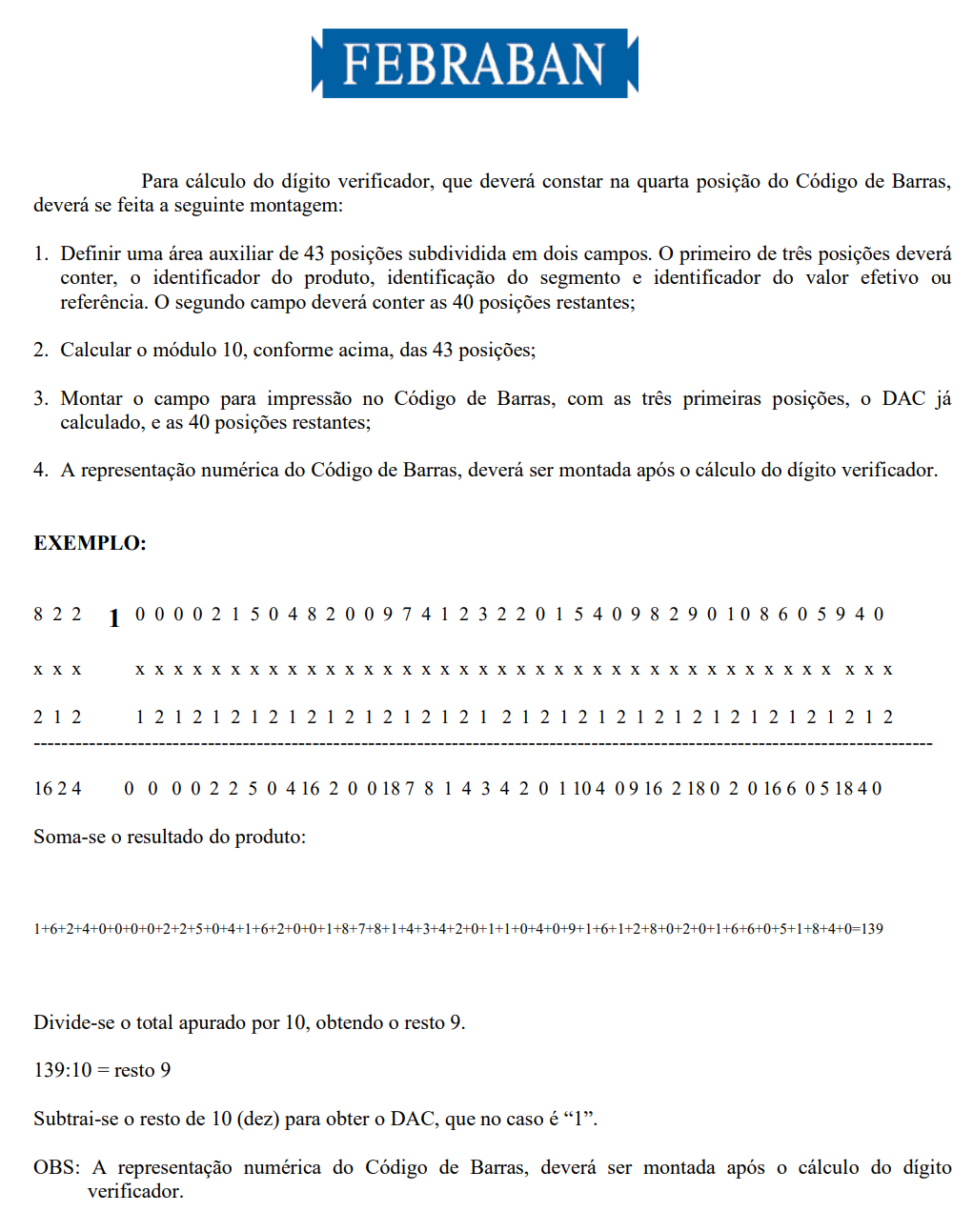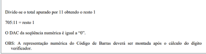 Nenhuma conclusão lógica sobre o cálculo do dígito de bloco.