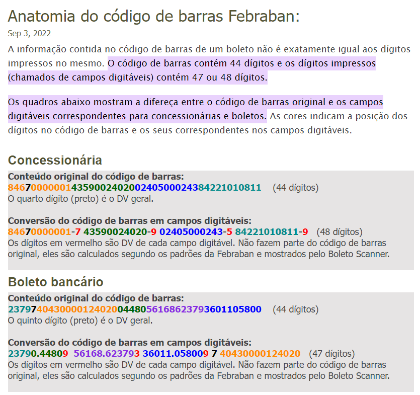 Como o manual da Febraban descreve 44 dígitos se são 48 ?