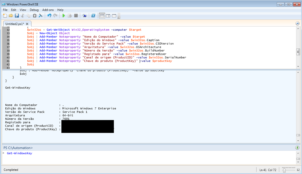 $obj | Add-Member Noteproperty "Chave do produto (ProductKey)" -value $productkey