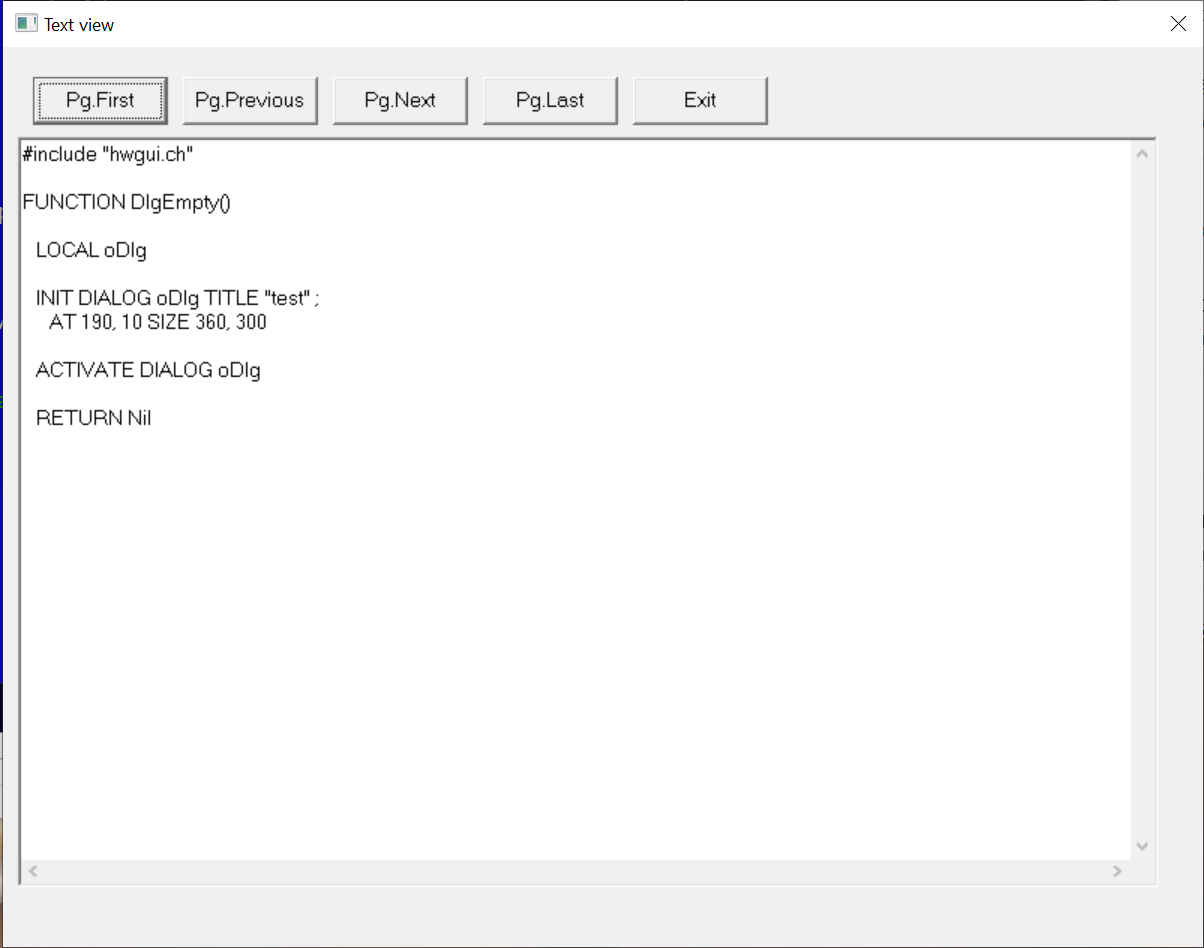INIT DIALOG oDlg CLIPPER TITLE "Text view" ;