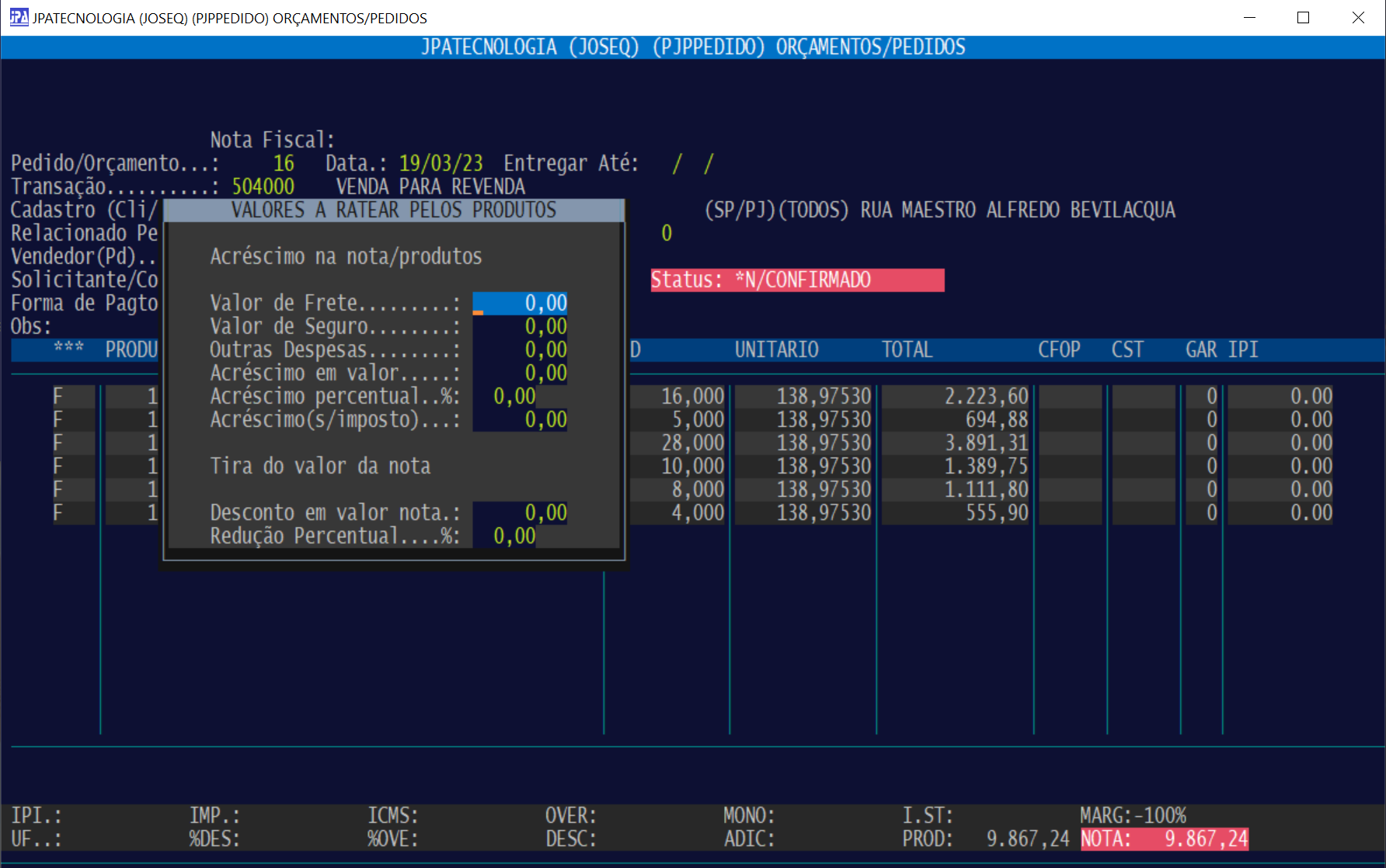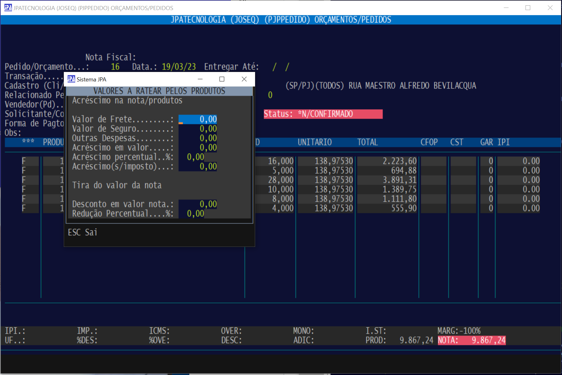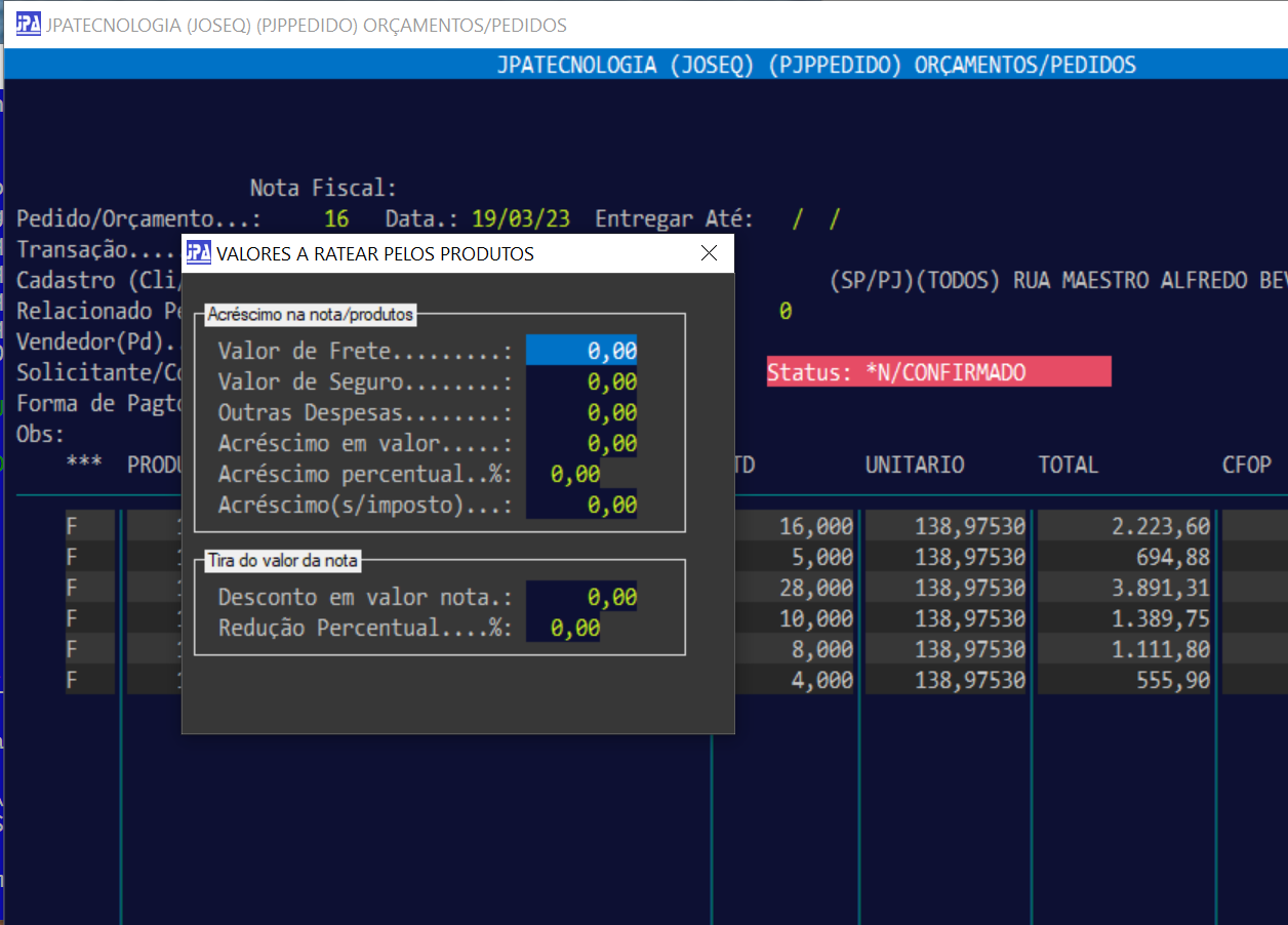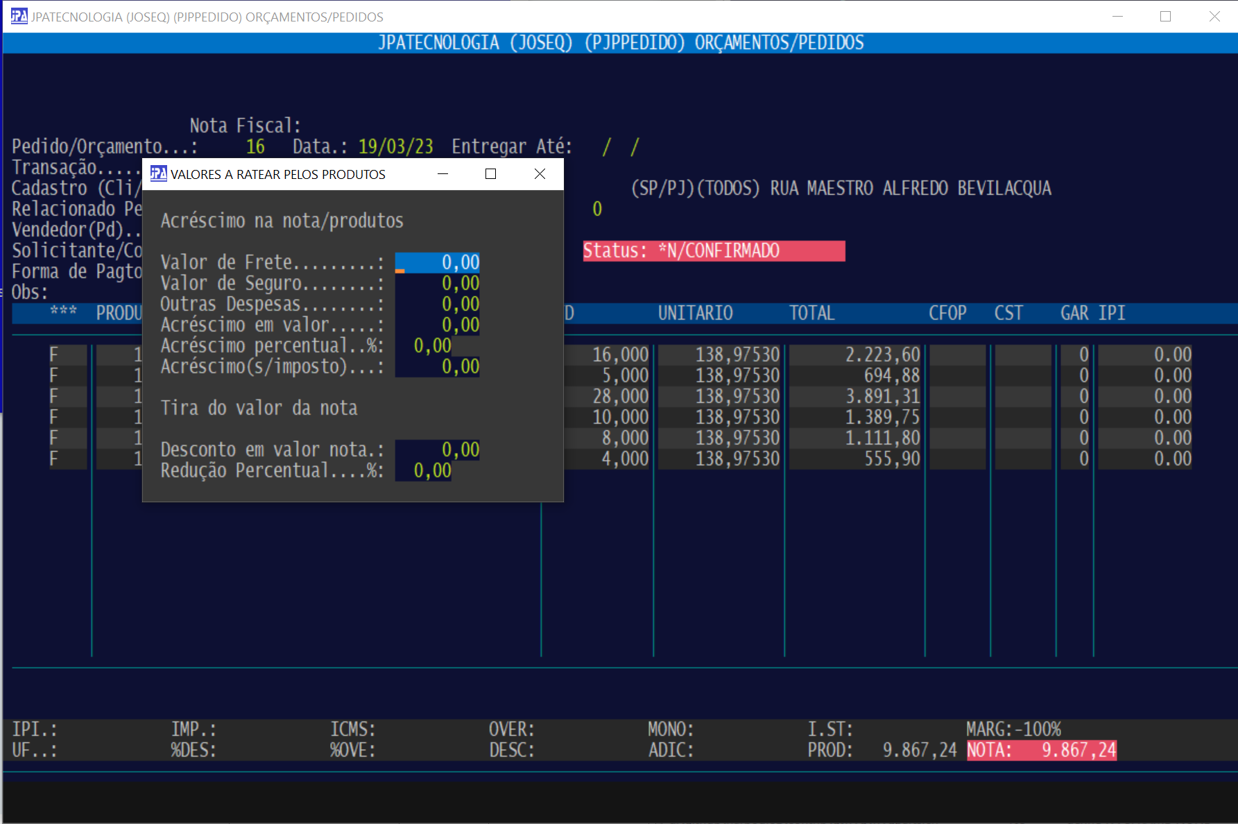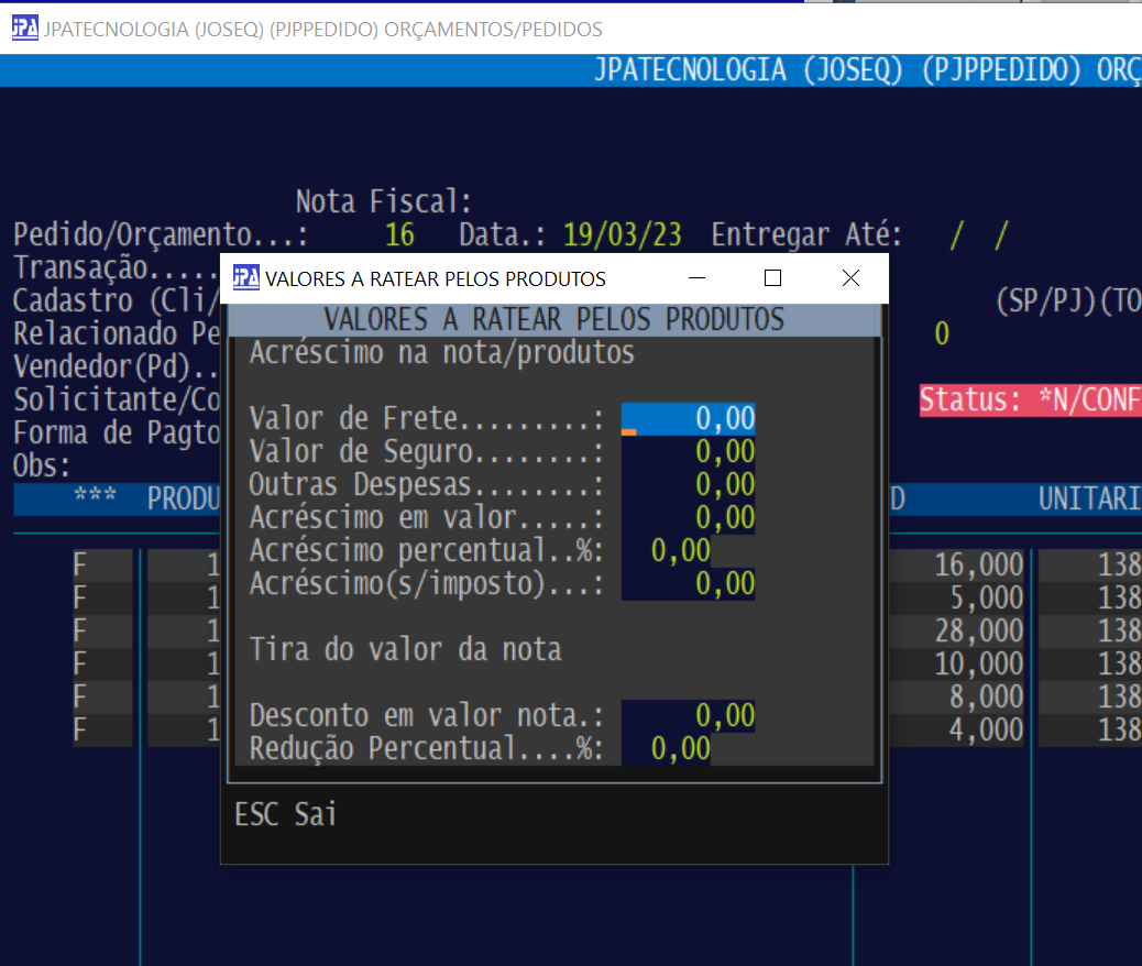 hb_gtInfo( HB_GTI_WINTITLE, "VALORES A RATEAR PELOS PRODUTOS" )