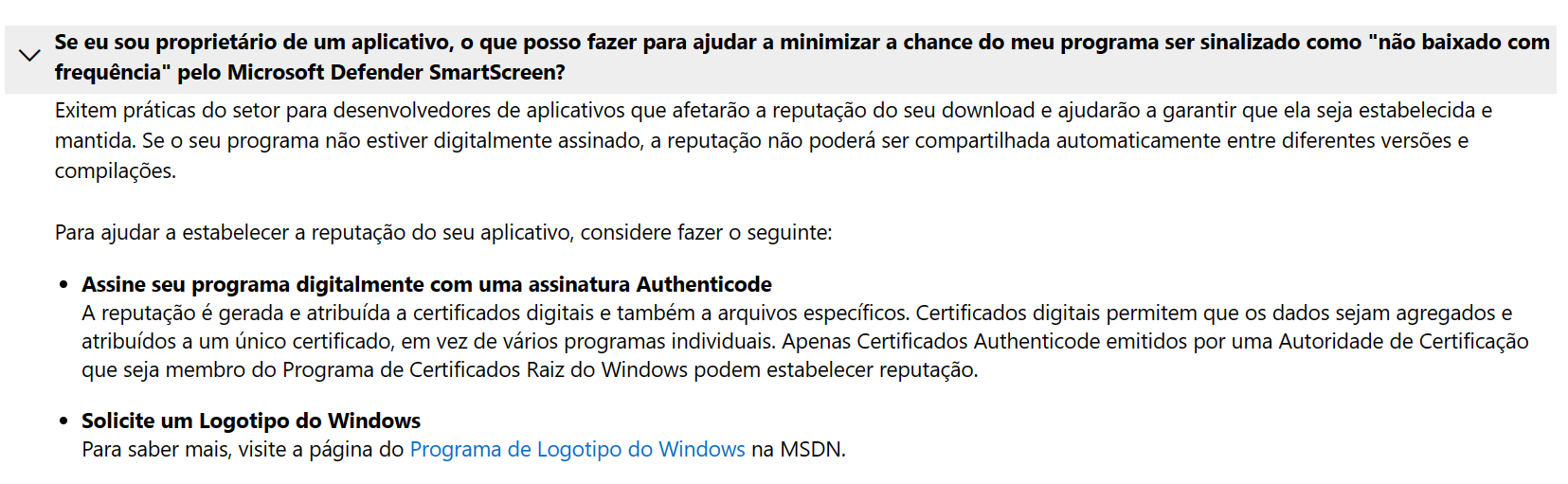 Confiança do windows no EXE